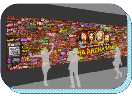 来場者だけが参加できる、アーティストとファンの想いをつなぐ「デジタル寄せ書き」。イベント当日に、スマートフォンから簡単にアーティストへの想いを描けます。みんなのメッセージで壁を埋め尽くそう!