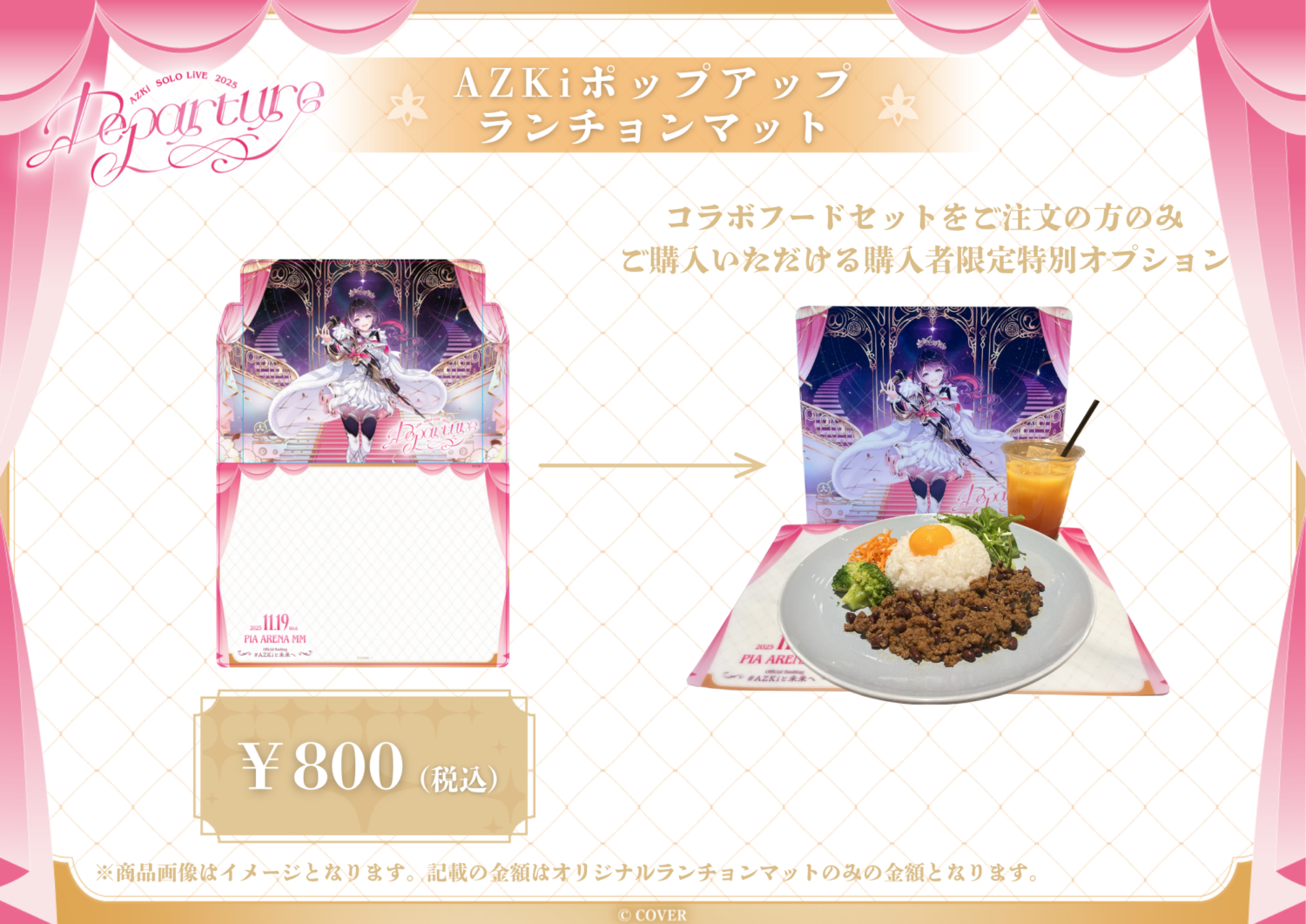 コラボフードセット購入者限定特別オプション(別料金):「AZKiポップアップランチョンマット」–¥800(税込)