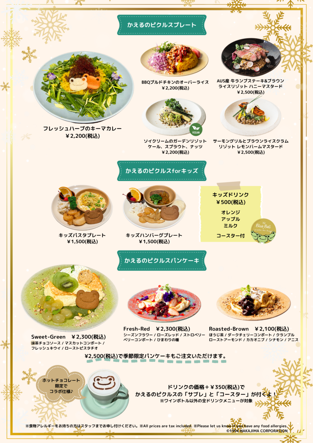 ※お電話でご予約の場合は、「かえるのピクルス コラボカフェでのご利用」の旨を