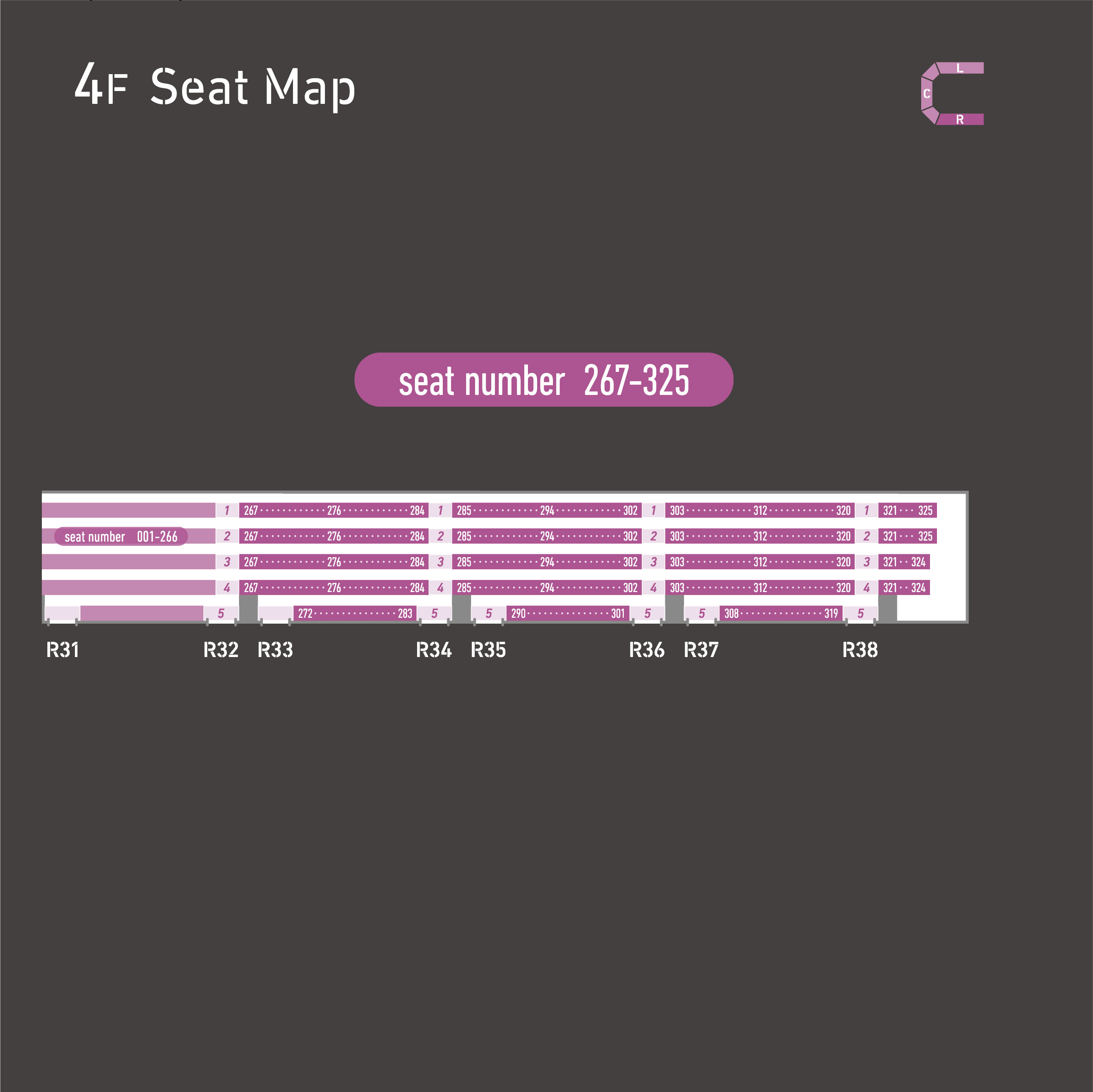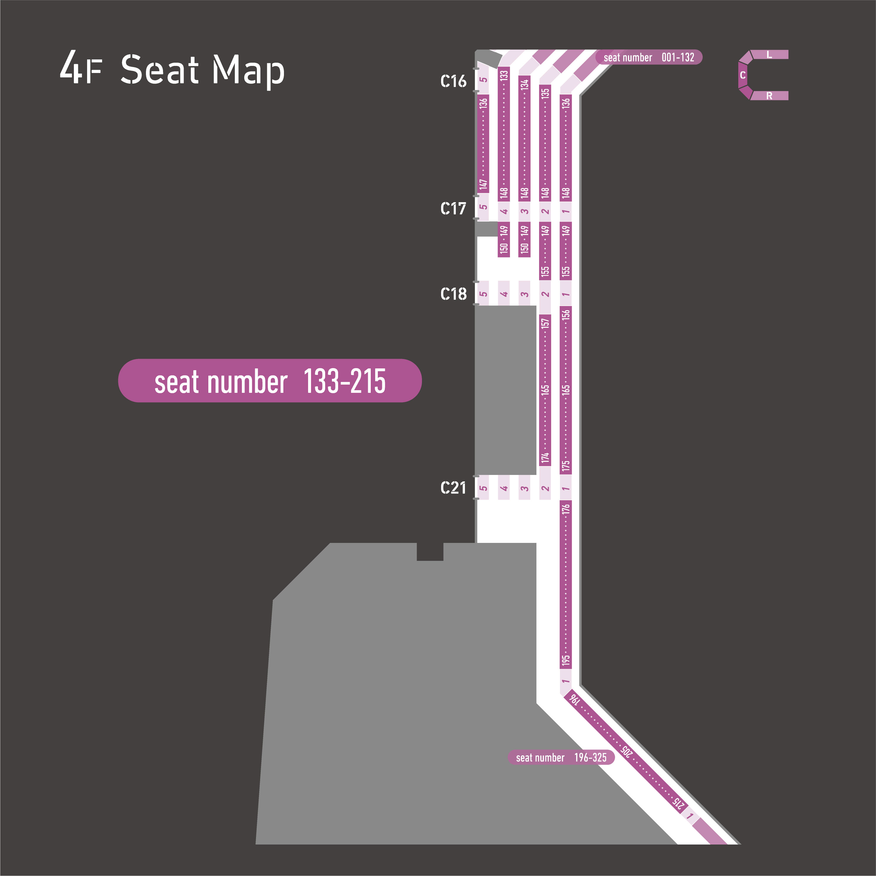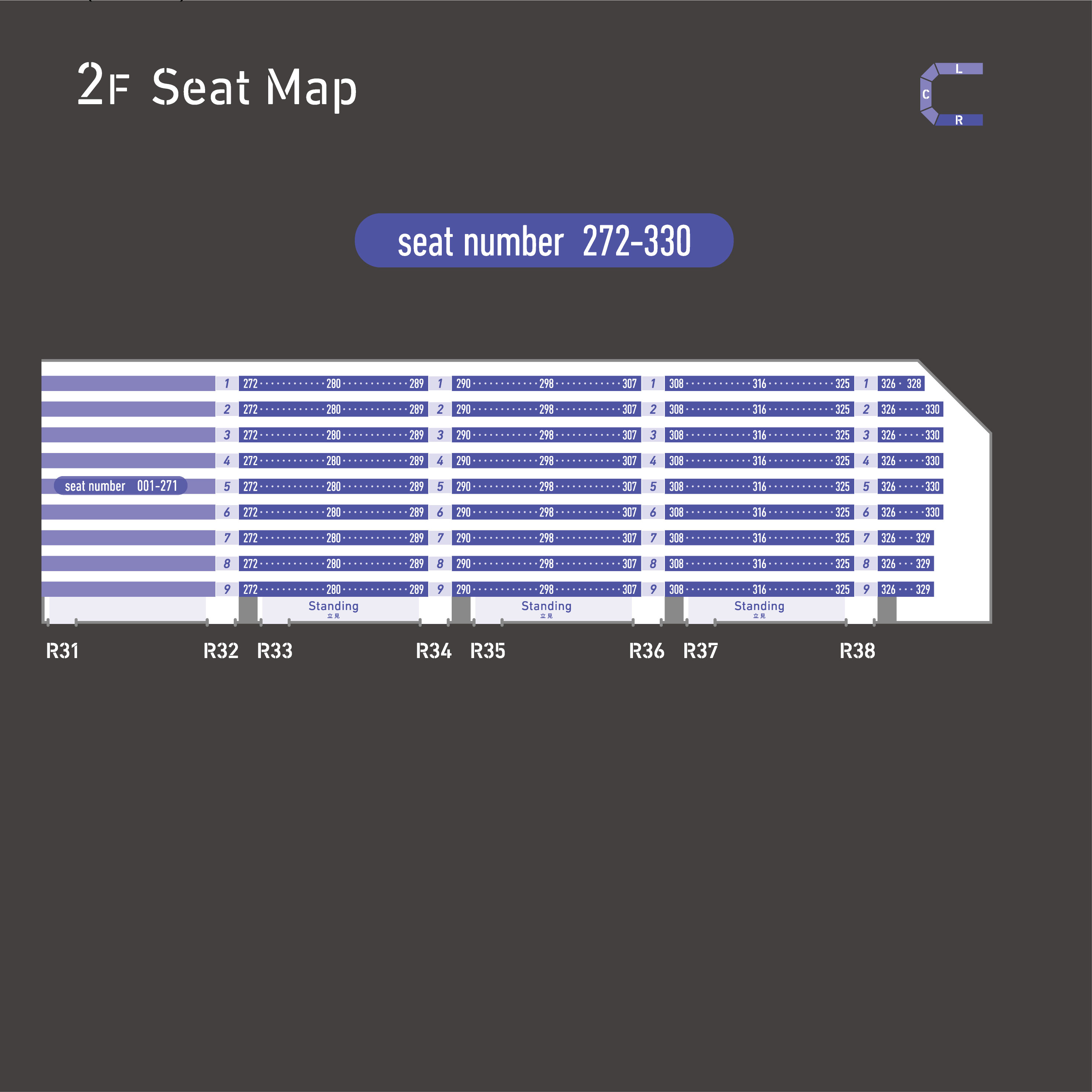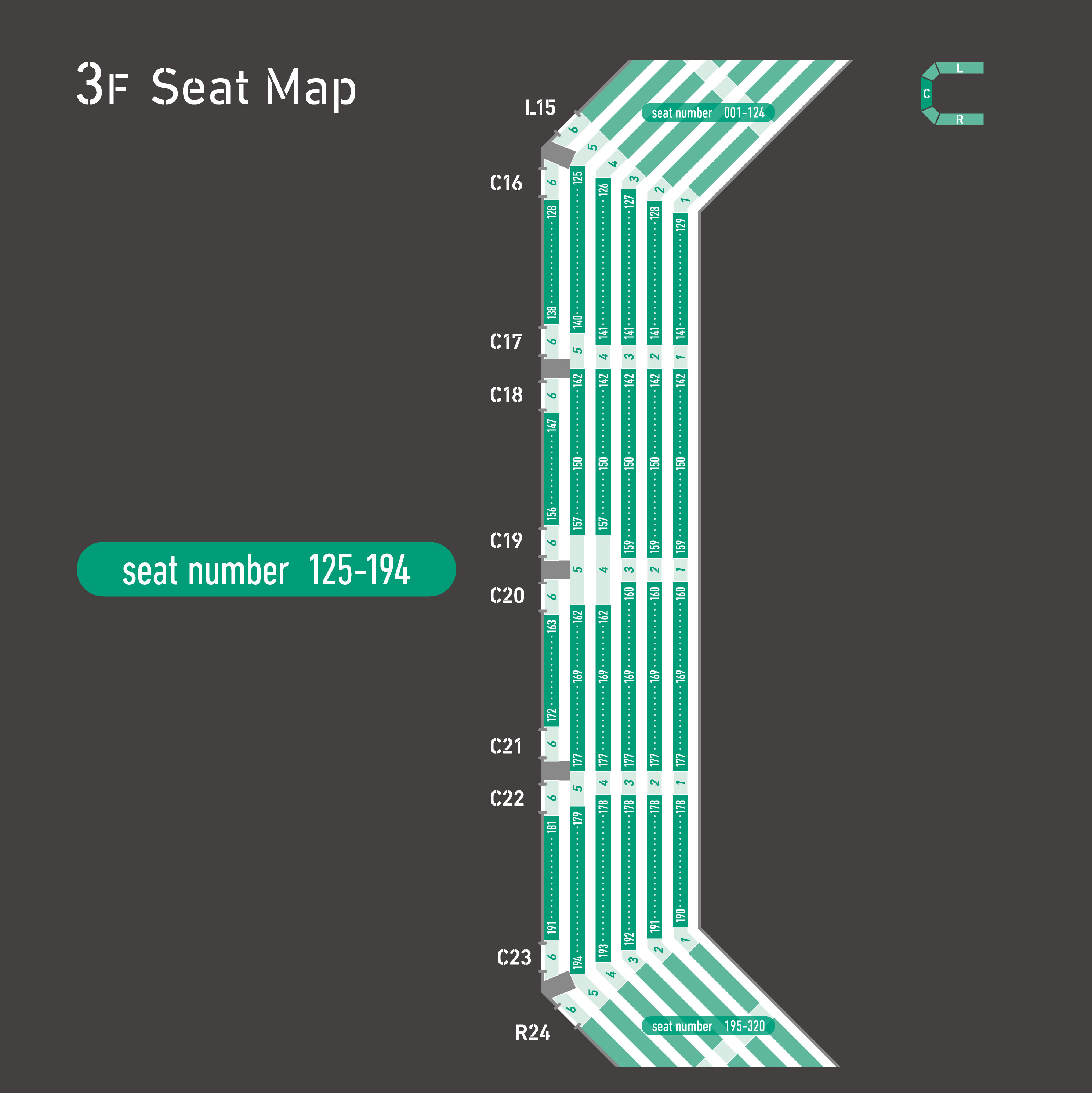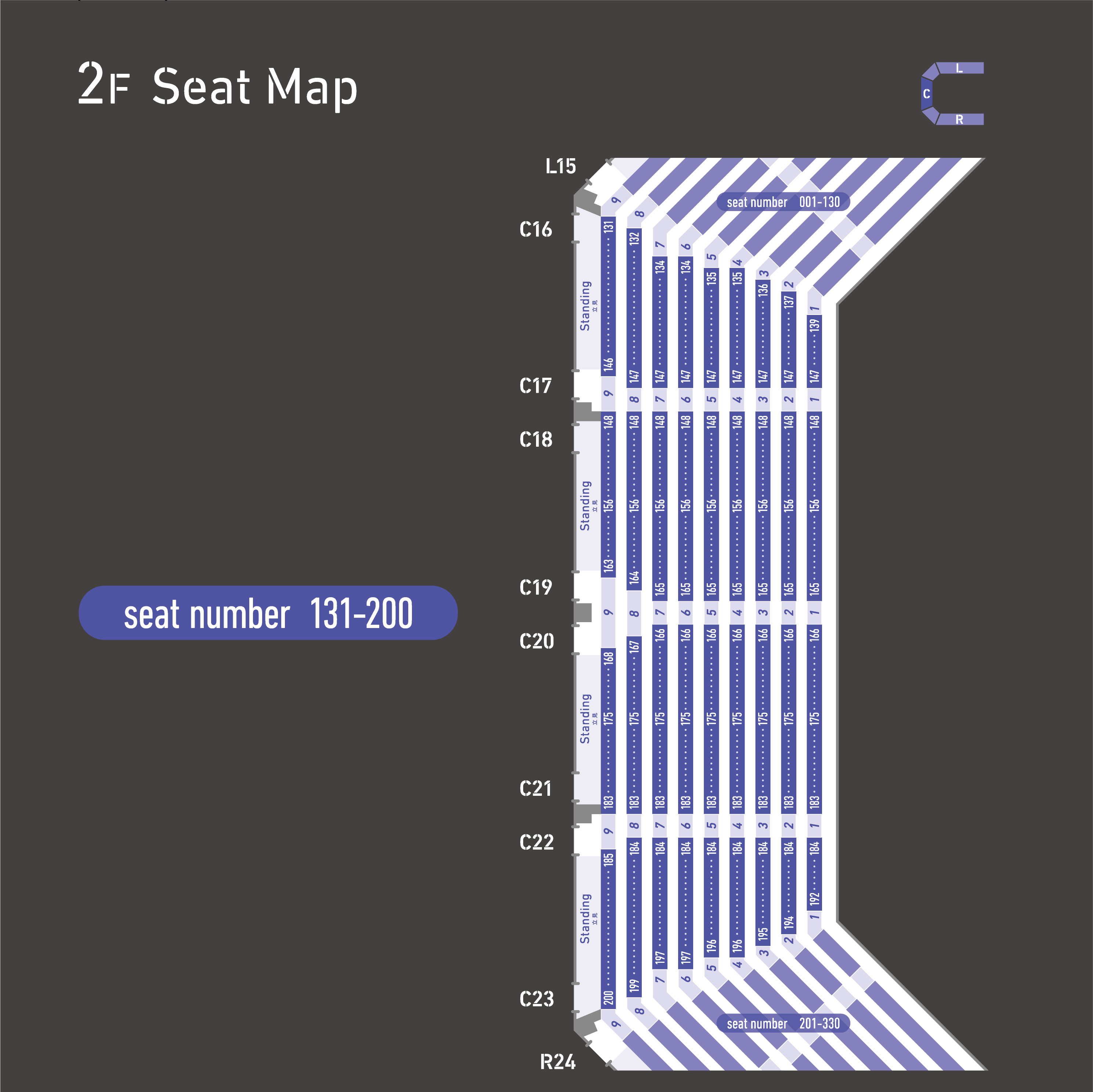 *2列137番,138番,193番,194番/3列136番,195番/4列135番,196番/6列134番,197番/8列132番,133番,198番,199番/9列131番,200番の座席にはドリンクホルダーのご用意がございません。
