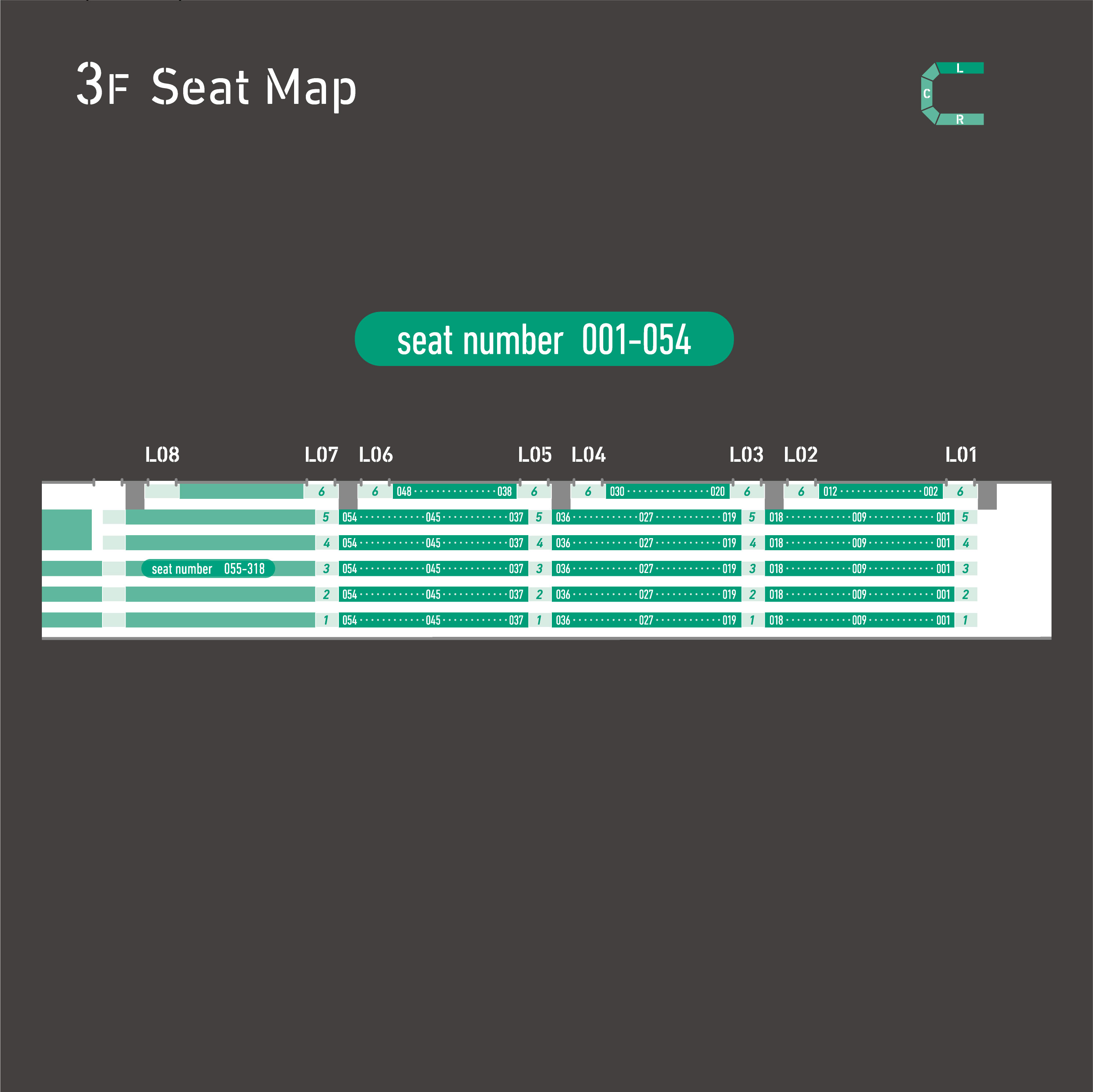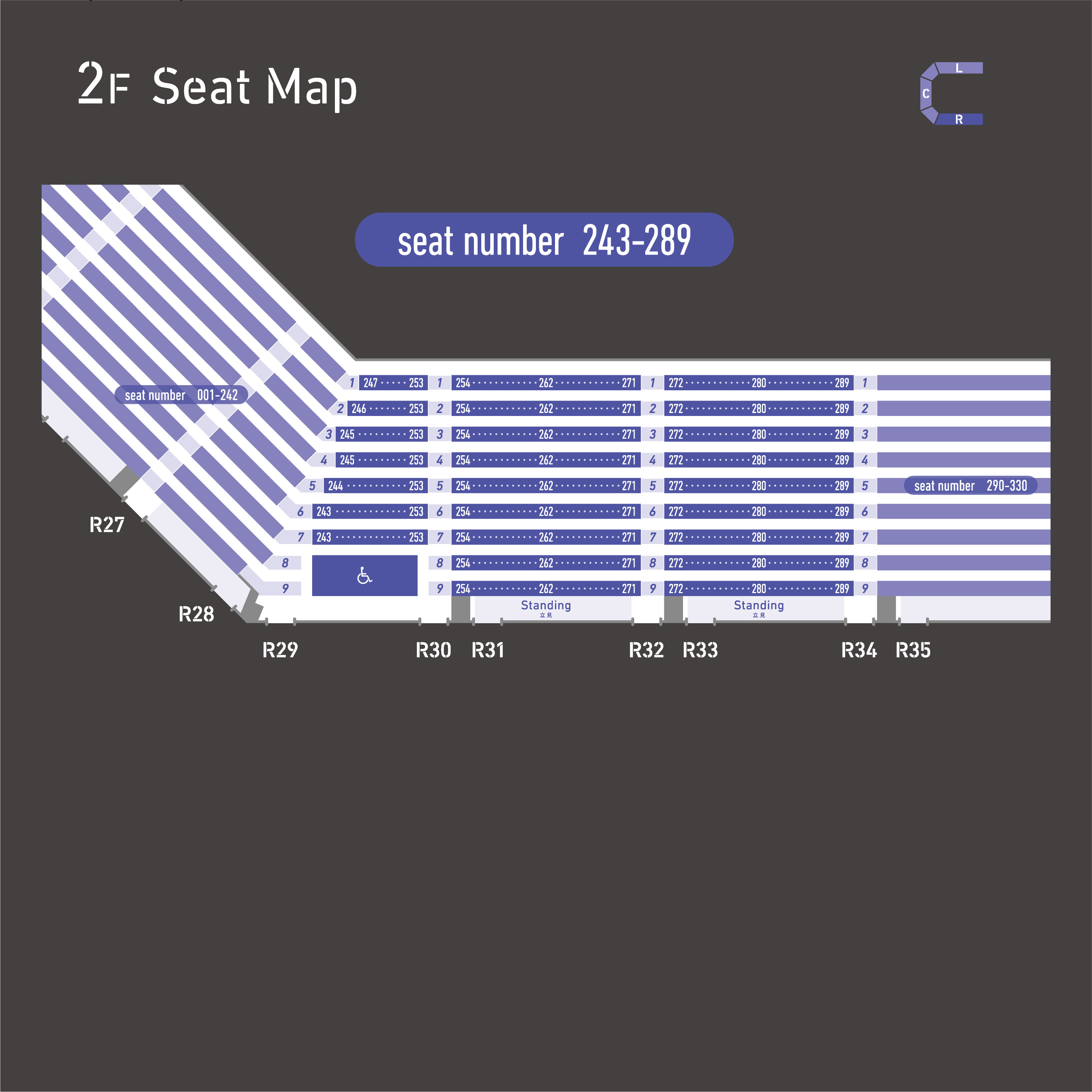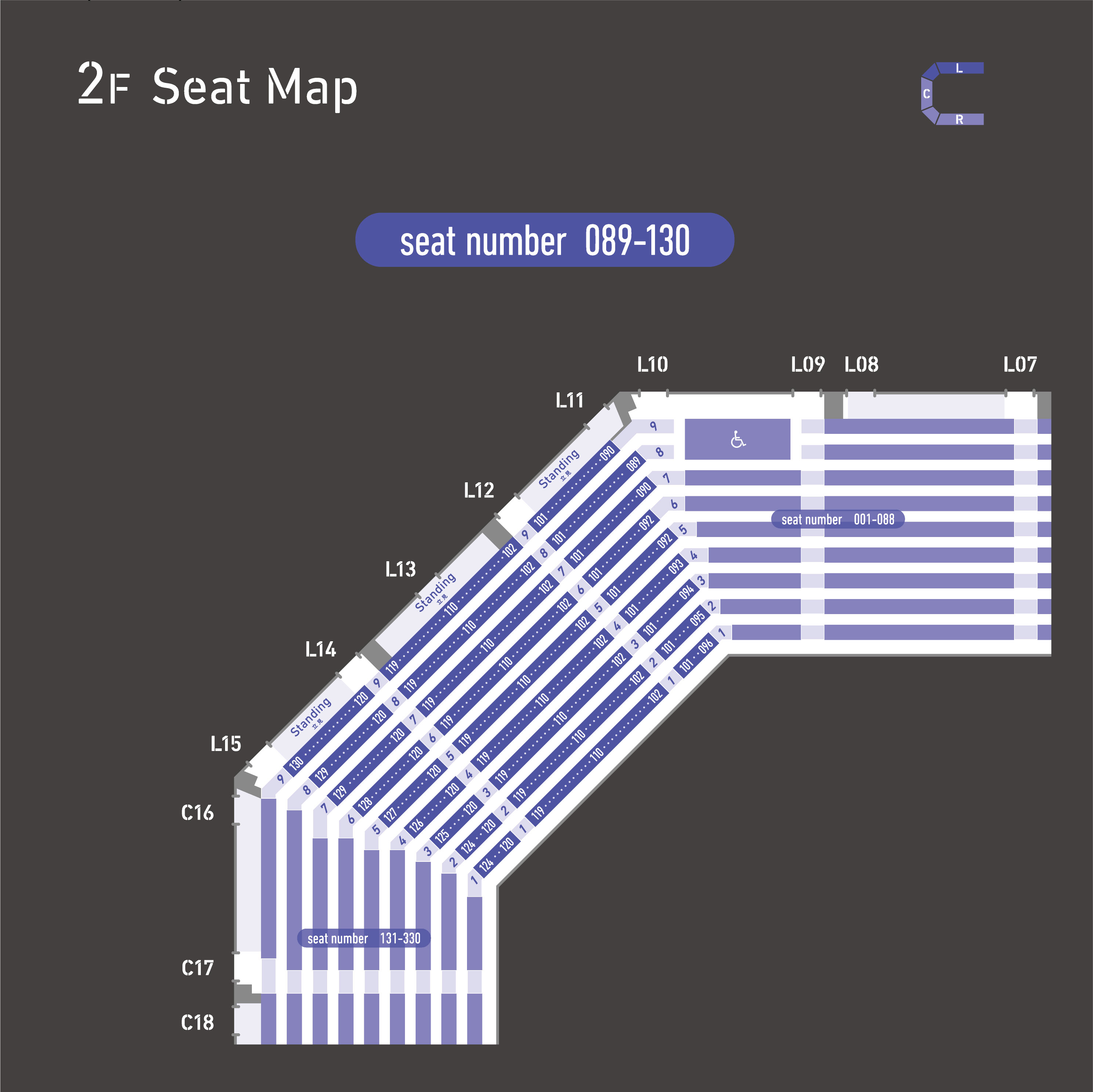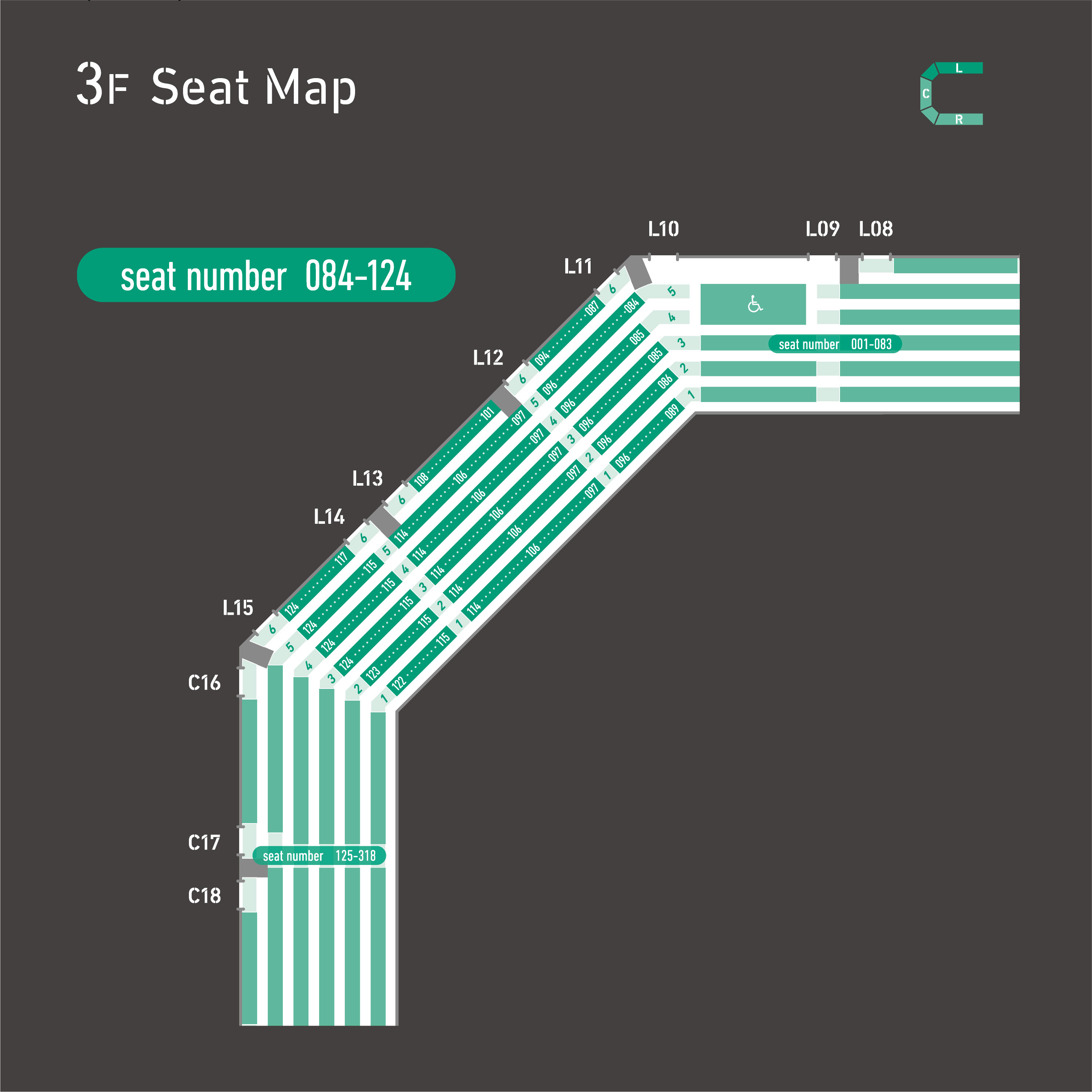*2列95番/3列94番,125番/4列93番,126番/5列92番,127番/6列128番/7列90番,91番,129番/8列89番/9列130番の座席にはドリンクホルダーのご用意がございません。